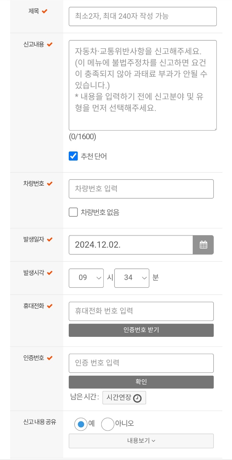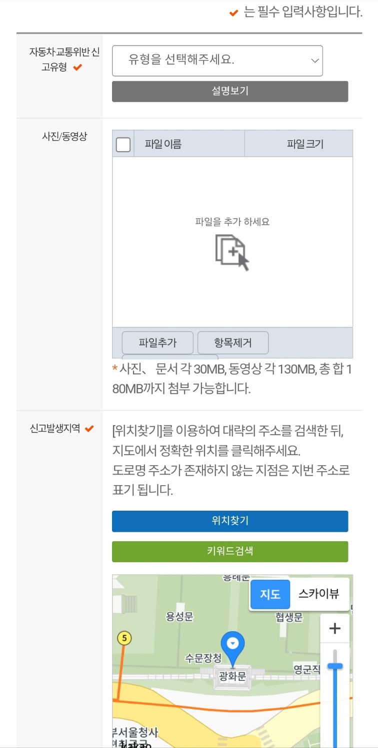 교통위반 신고를 해야 하니