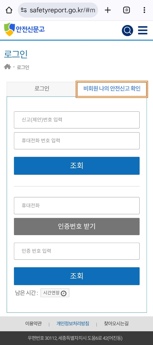비회원이신 분은 신고번호와 전화번호를 입력해서 바로 확인하시거나