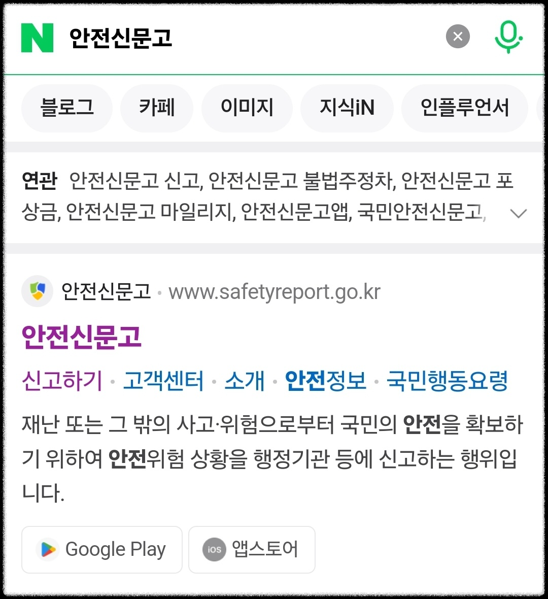 네이버에서 '안전신문고'를 검색하시면 위와 같이 나오는데