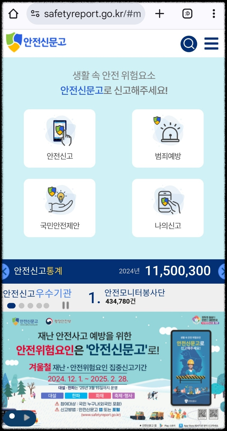 2. 홈페이지에 들어간 후 안전신고 누르기