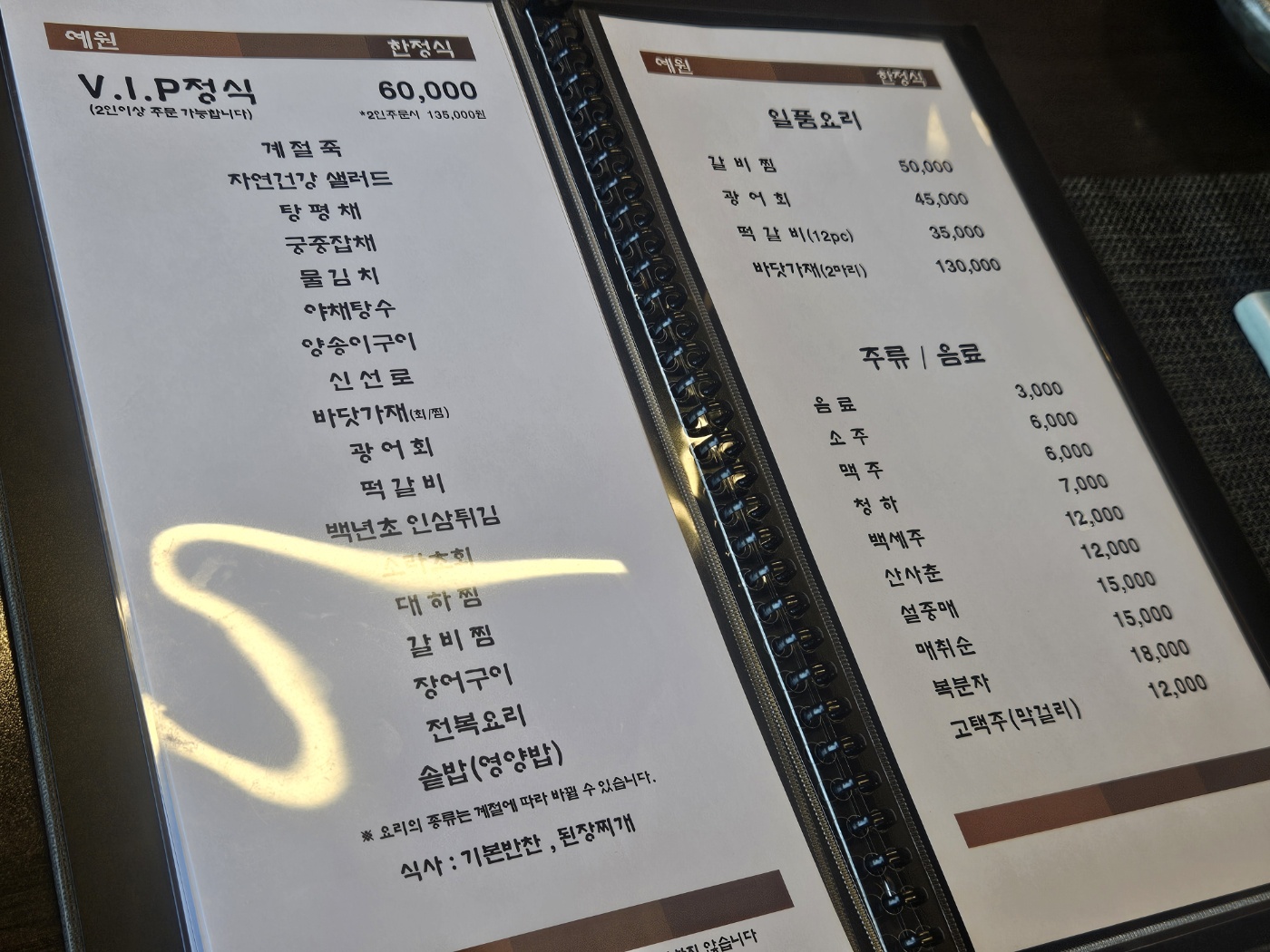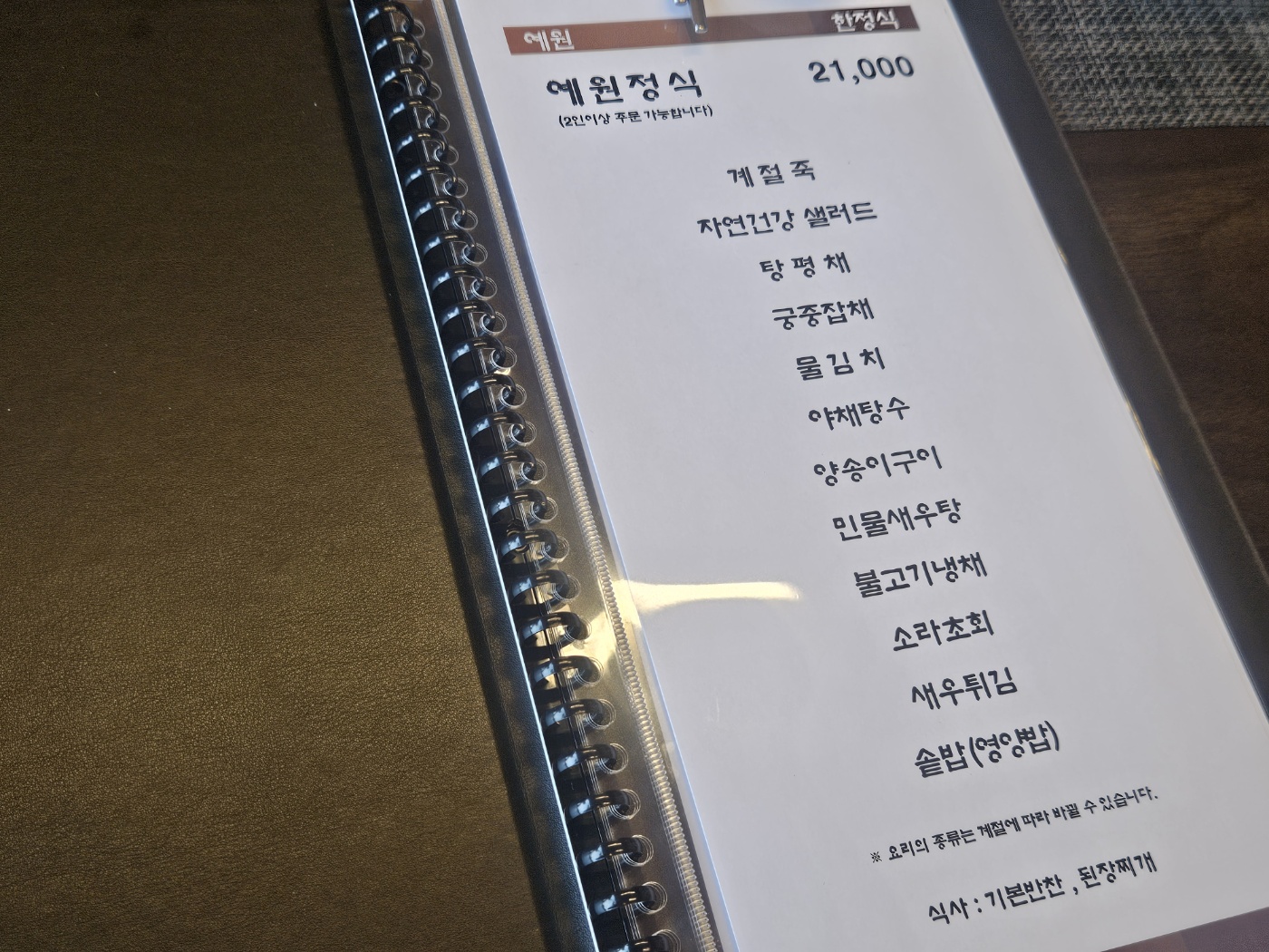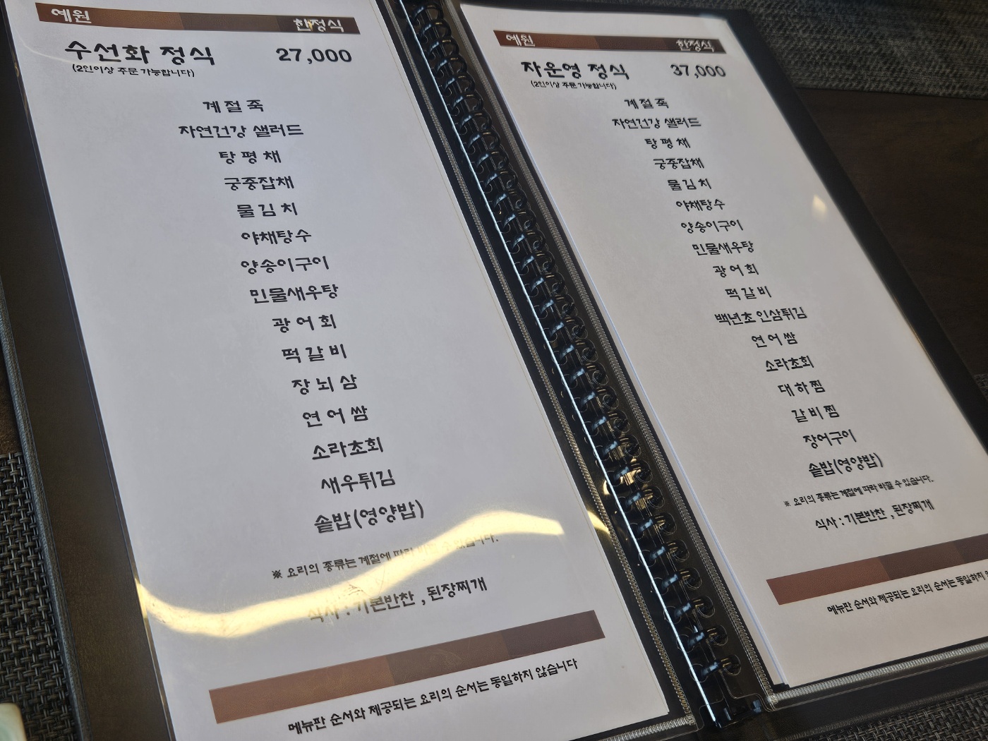 4가지의 정식메뉴 중 수선화정식으로 시켰습니다.