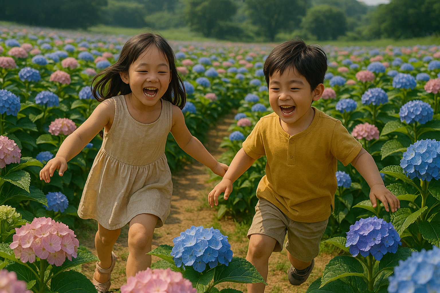 공주 유구읍의 색동수국정원은 다양한 색상의 수국이 아름답게 조성된 마을형 정원입니다. 6월 말이면 정원이 활짝 핀 수국으로 가득 찬 풍경이 펼쳐지며, 소박하지만 정성스러운 마을 축제가 열립니다.