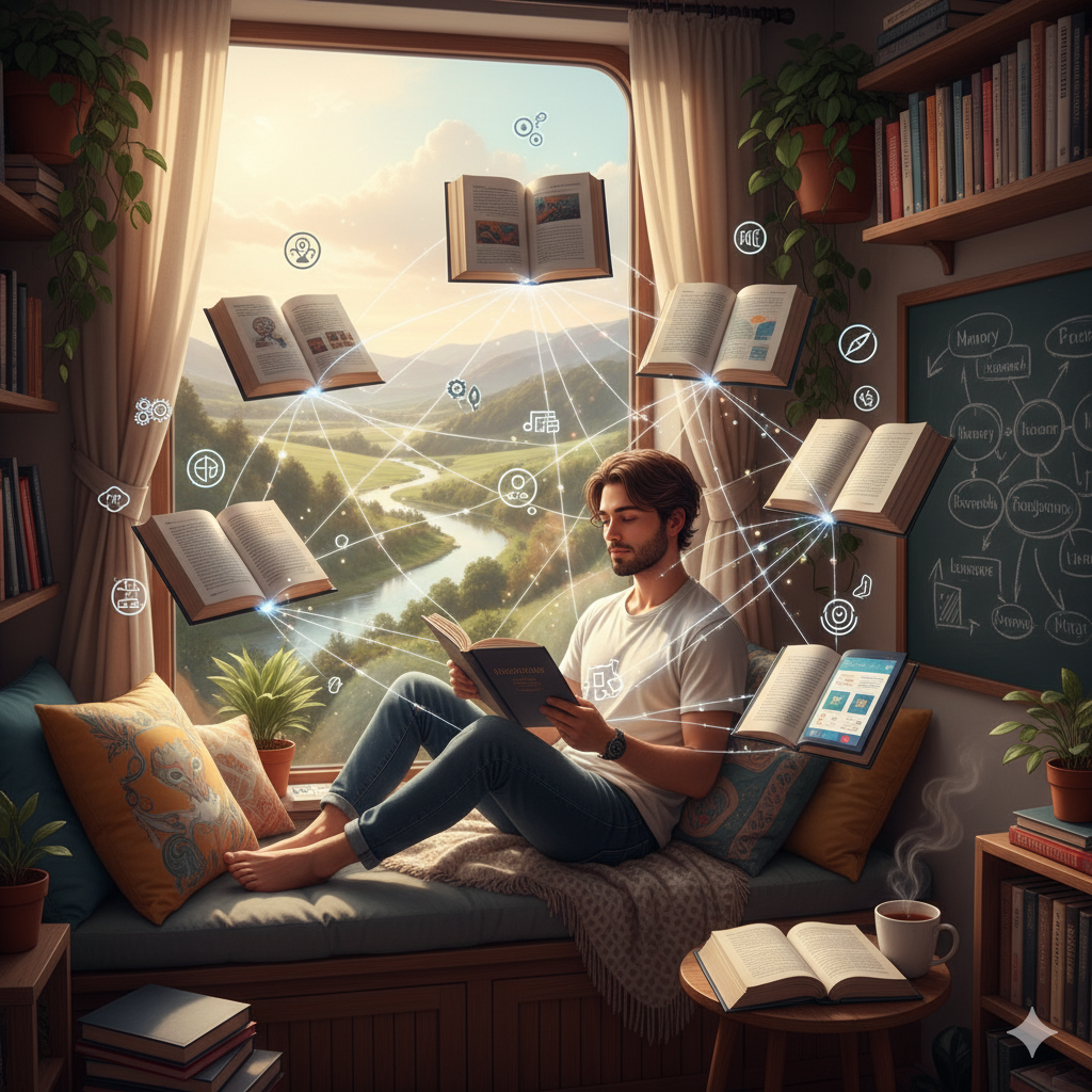 - 효과: 파편화된 지식이 아니라, 하나의 큰 주제를 다양한 관점으로 입체적으로 이해하게 되어 **'통찰력'**이 폭발적으로 증가합니다.