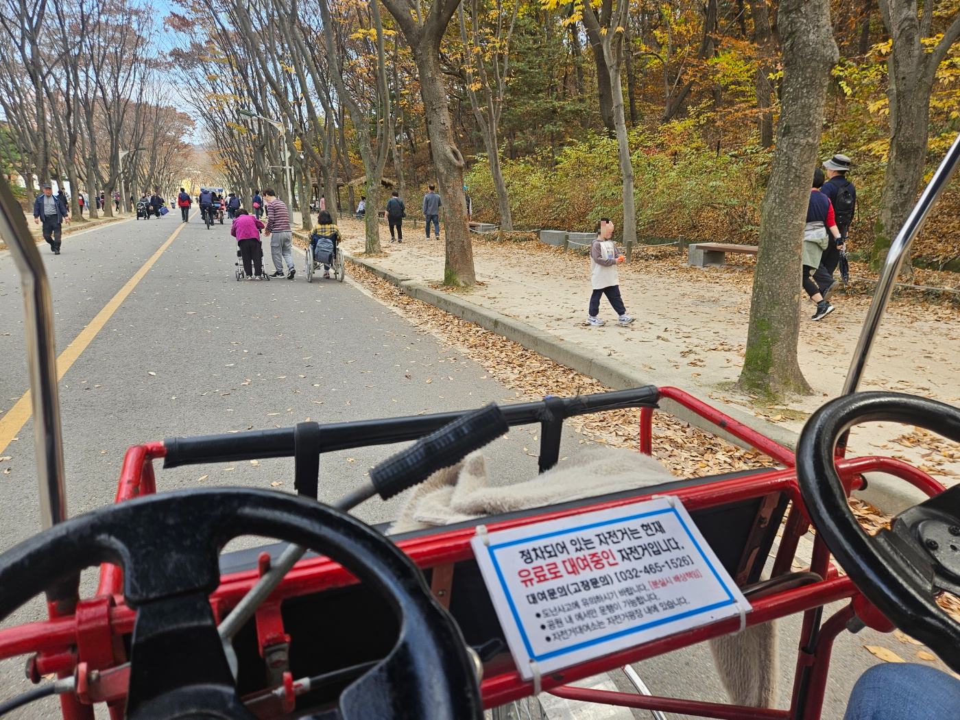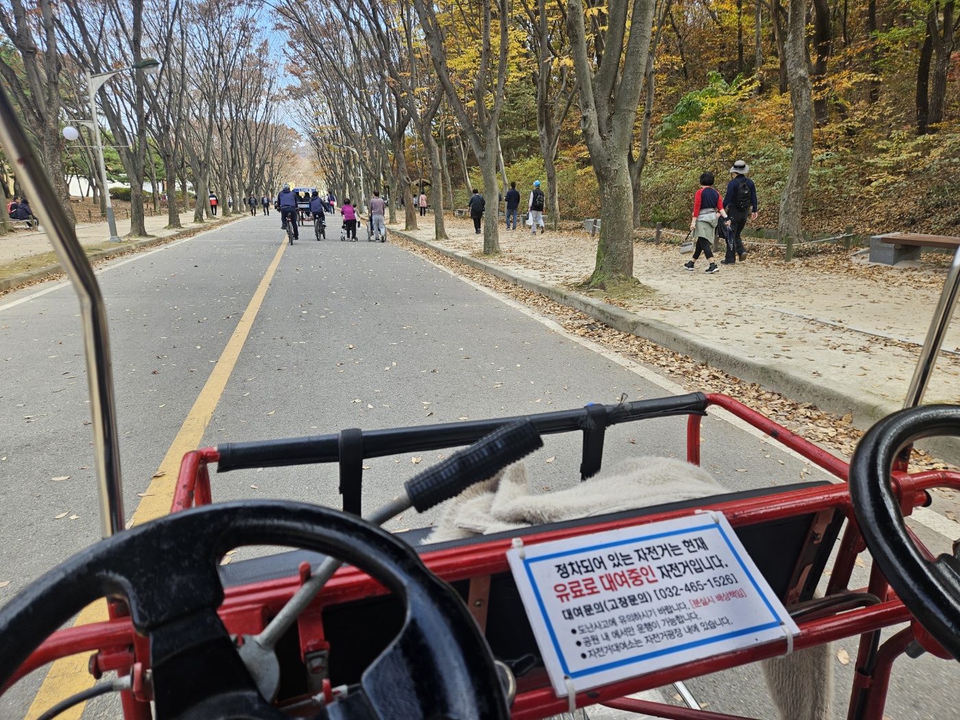 (비용은 다인용 자전거는 1시간 기준 만원이고 10분 초과 시 2천 원이었던 걸로 기억합니다)