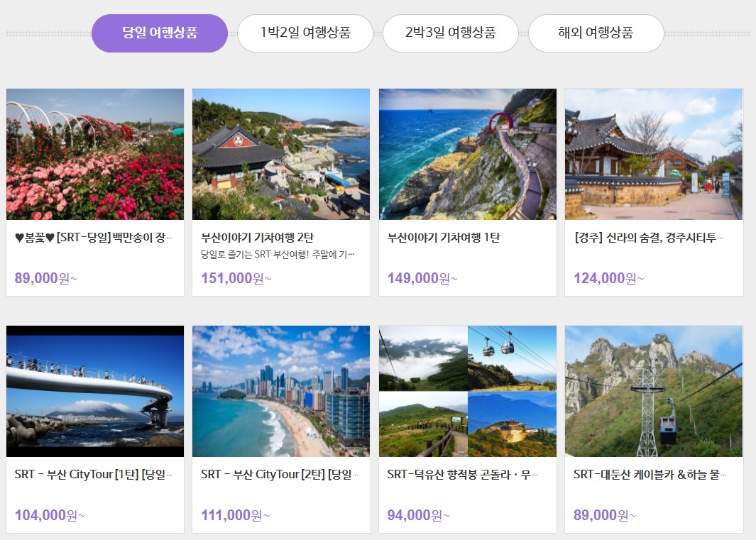 - SRT플레이 웹사이트 및 앱 (여행 패키지 포함 예약 가능)